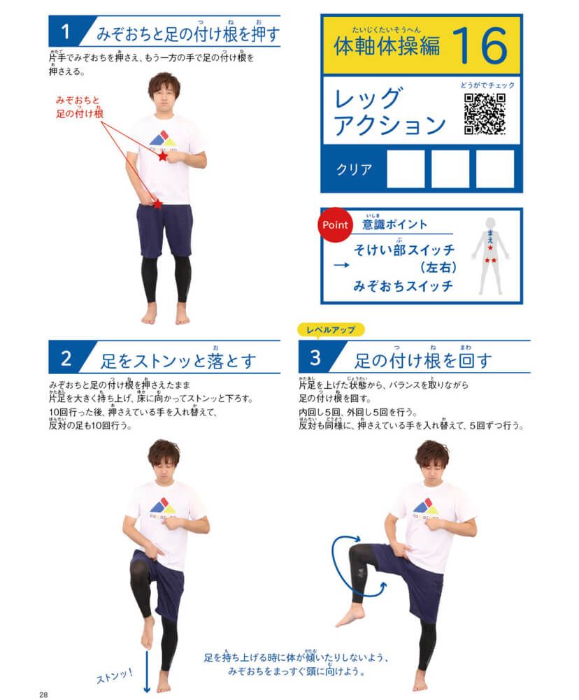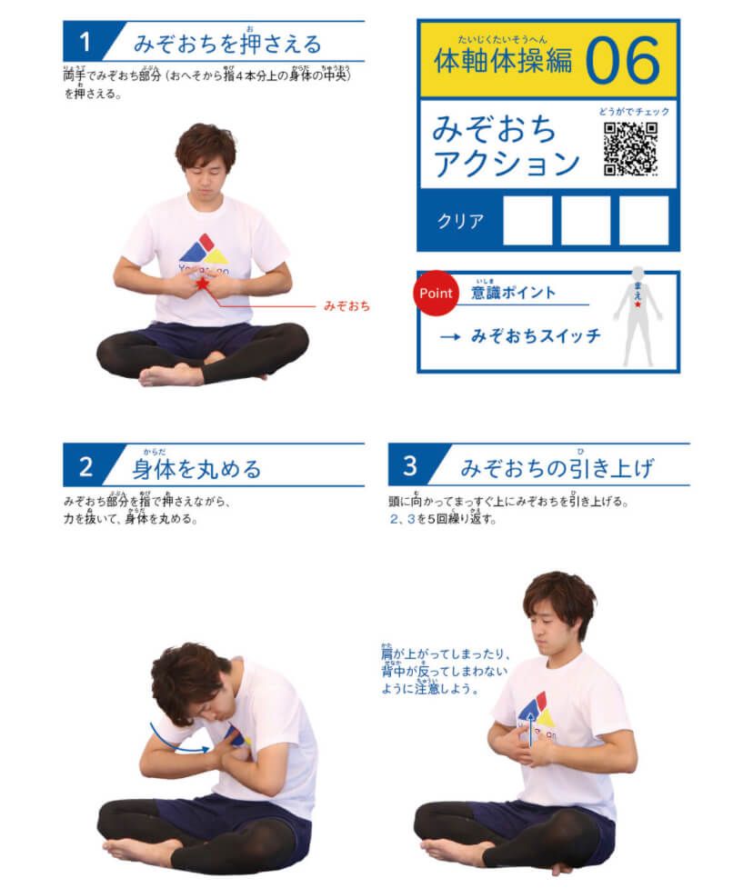 ・腰の固定:みぞおちアクション、スパイラルアクション、どんぐりアクション