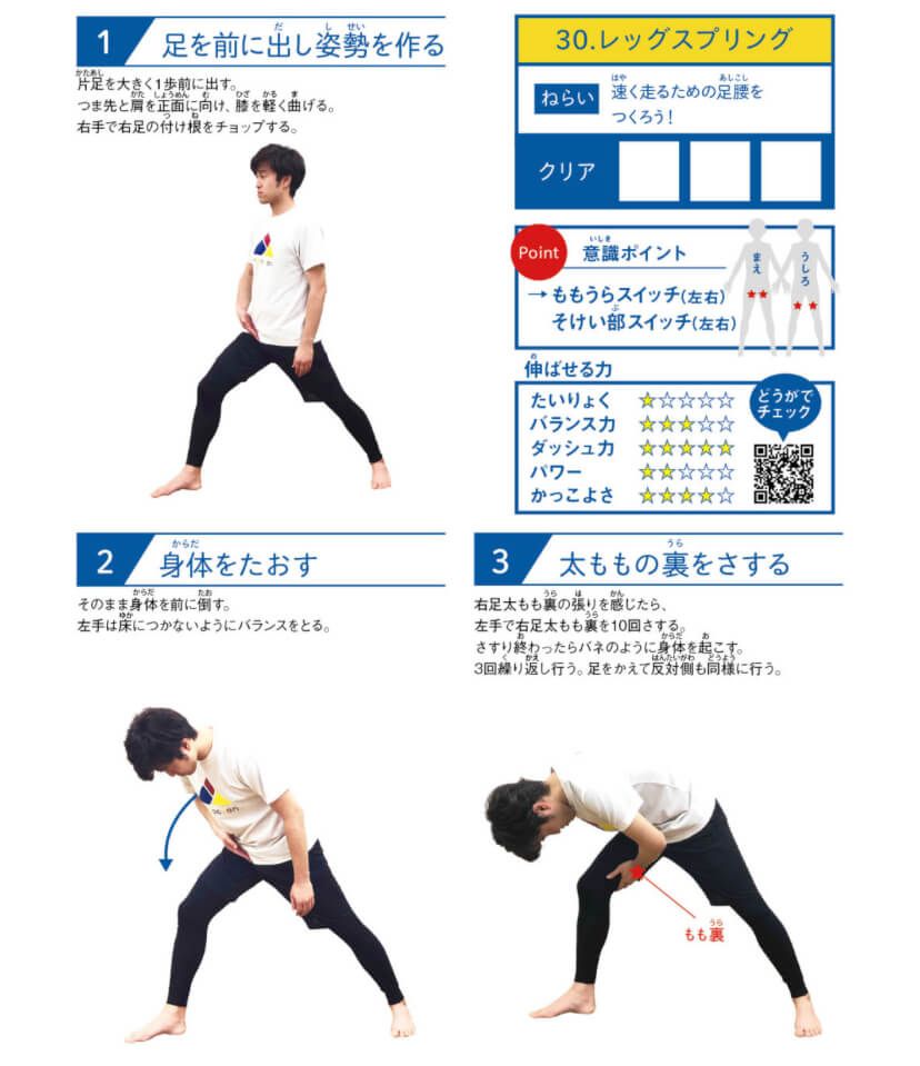 ・前モモの固定:レッグアクション、レッグスプリング、スクワットアクション