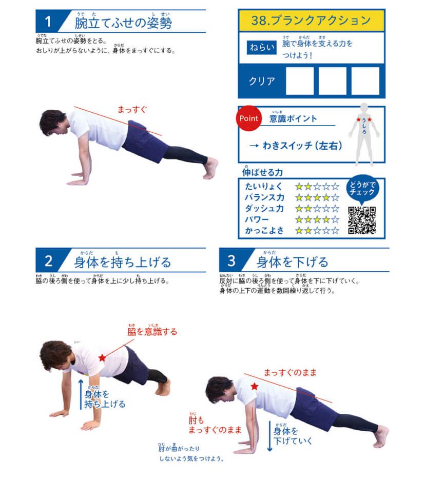 ・肩の固定:わきアクション、アザラシアクション、プランクアクション