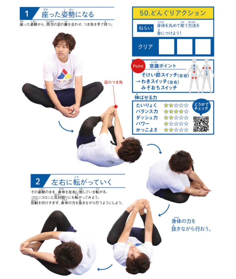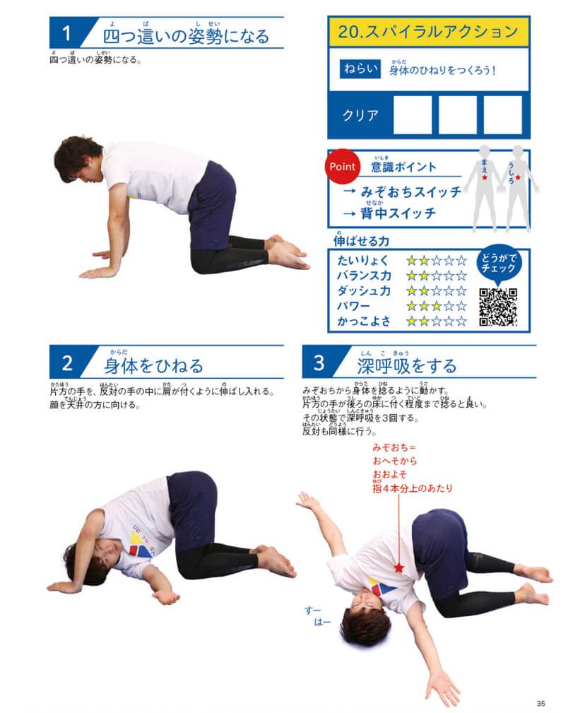 子どもの身体のインナーマッスルを活性化するため、たった、10秒の動きで繰り返し行うことで、正しい身体の使い方が身についていきます。