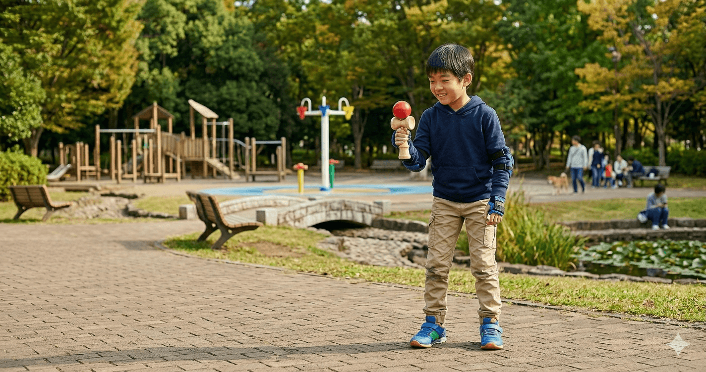 けん玉は、十字状の「けん」と、穴のあいた「玉」を糸で結んだ日本の伝統的な遊具です。一見、手先だけの遊びに見えますが、「全身を連動させる精密なスポーツ」として、現在では世界中で「KENDAMA」として親しまれています。