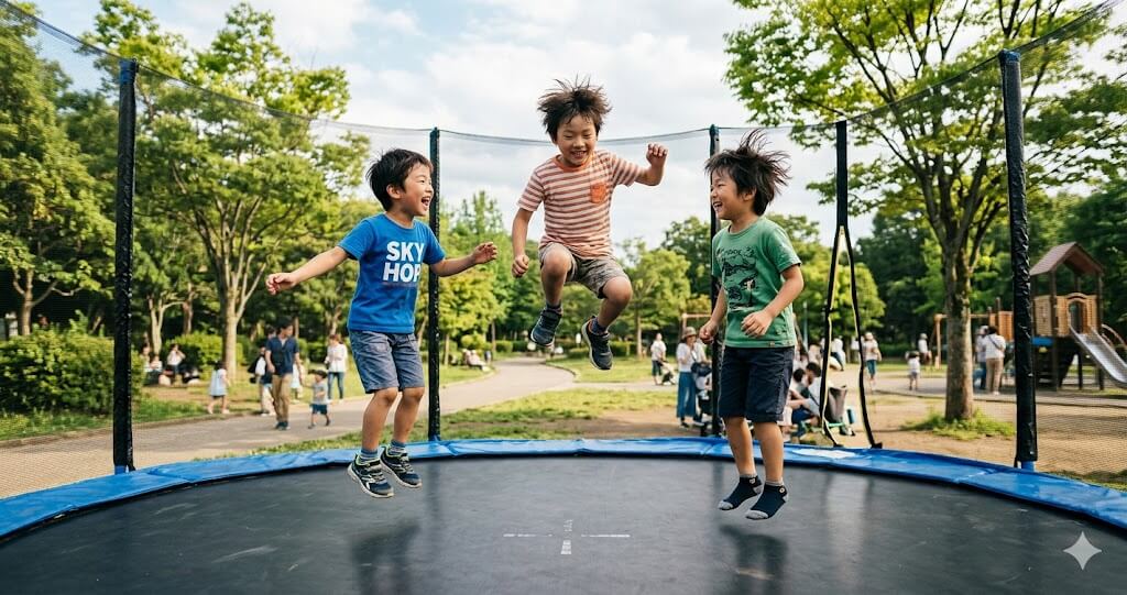さまざまなポーズをすることでさまざまな動作を正しく学習することができます。最近は、公園などでも大型トランポリンが設置されているところもあるため、ぜひ探して行ってみましょう!自宅用の小さなトランポリンも販売されているので比較的取り入れやすい遊びですよ。